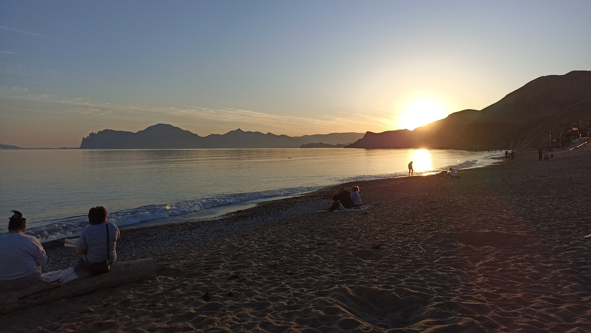 Сегодня я поздравляю всех со светлым праздником, с Пасхой! Всем добра, мира и благополучия. Вечер перед праздником был тихим и очень уютным. На берегу гуляли и сидели приехавшие и местные. Некоторые уже и в воду заходили, а некоторые и праздновать уже начали :) Уютные компании сидели и на лавочках, и на брёвнышках, и просто на песочке. Я пришла к морю на закате. Целый день то делами занималась, то потом разбиралась, как всё устроено в Телеграм, как там настраивается канал. Теперь он у меня есть :) Заходите, буду рада )) https://t.me/HbyV61oLRaRhNjg6 Я шла по улочкам не торопясь, смотрела на палисадники, которые становятся всё ярче и красивей. На деревья, что почти все уже покрылись зелёной листвой. Люблю такие вот тихие вечера. Но тихие вечера заканчиваются, начинается шумная летняя жизнь :) Прогулялась я вдоль кромки прибоя, послушала мерный шорох волн. Посмотрела, как радостно носятся собаки, то и дело забегая в воду ) Повернула от Бора-Бора обратно и ближе к стадиону, где проход
