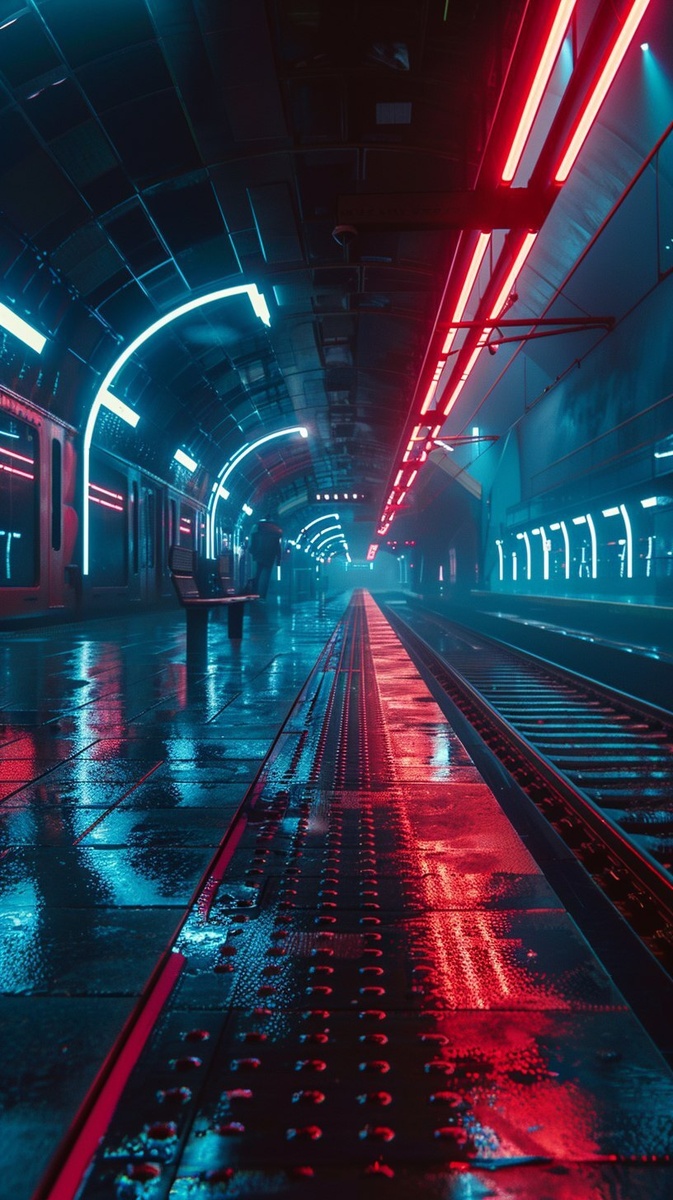 Создано на основе запроса: a hyper-realistic empty train station at midnight, wet ground reflecting neon lights, cinematic lighting, moody