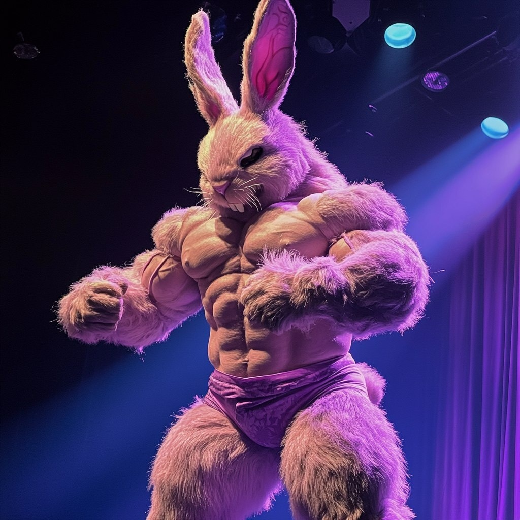 Создано на основе запроса: a hulked up easter bunny on steroids headlining a chippendales show