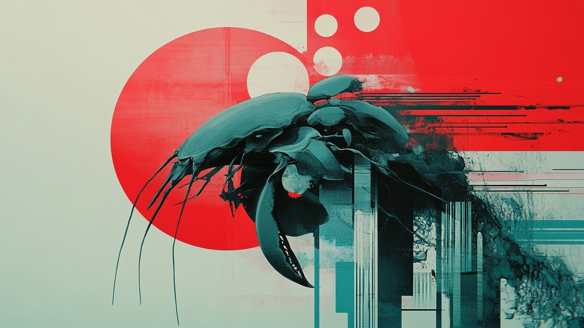 Создано на основе запроса: Experimental, cross-hatched, avant-garde. A beautiful machine crustacean, diffraction, heat occasion, bright patches, dark patches and unusual shapes and forms. Cyan, Cerise, white quadtone. Sakuga animation cel --- Автоперевод: Экспериментальный, перекрестный, авангард. Хорошо выглядит? 🤔 https://dzen.ru/id/65c0c65c86e4f837c27b24d7 #ИИ #AI #нейросеть #midjourney #art