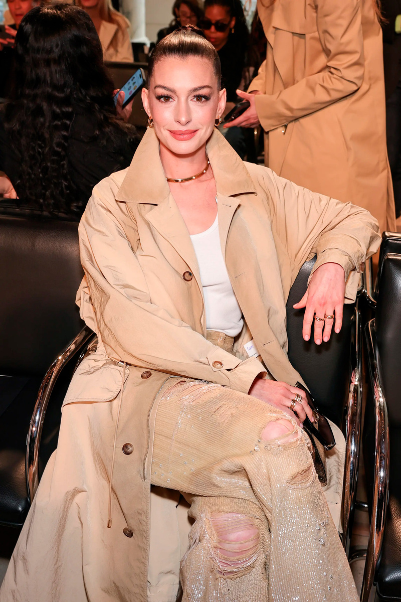 Вечно нестареющая Энн Хэтэуэй стала предметом горячих обсуждений после того, как села в первый ряд на показе Ralph Lauren осень 2025. Звезда фильма «Дьявол носит Prada» выглядела свежо, когда рассматривала потрясающую коллекцию вместе с другими знаменитостями, такими как Мишель Уильямс, Наоми Уоттс и Кейси Масгрейвс в Нью-Йорке. Фотографии и видео быстро распространились в социальных сетях, а некоторые поклонники задались вопросом, как ей удается оставаться молодой и без морщин. «Эти пластические хирурги очень хороши», — говорят одни. «Деньги потрачены не зря, я даже ничего не могу сказать», — вторят другие. «Она похожа на вампира. Она не стареет», — пишут фанаты. Поклонники предположили, что звезда изменила в себе всё: от пластики носа до подтяжки бровей и глаз, конечно, вместе с первоклассными процедурами по уходу за лицом и кожей. Другие же отметили, что супергладкий хвост Хэтэуэй, возможно, немного помог подтянуть лицо. Энн Хэтэуэй на шоу Ralph Lauren, 2025 Энн Хэтэуэй выглядит, ка