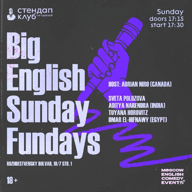 Just a quick reminder… tomorrow at Stand Up Club on Trubnaya we’ll be having our next edition of Big English Sunday Fundays!