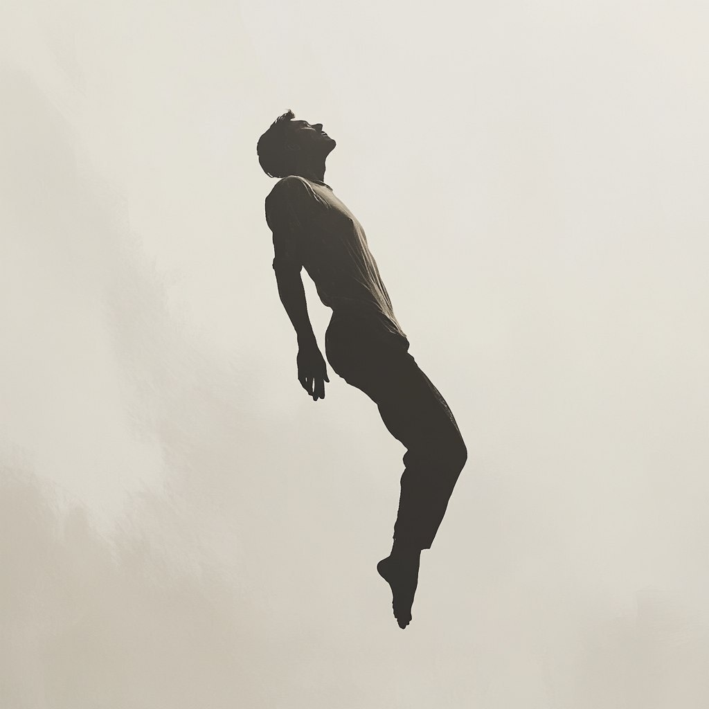 Создано на основе запроса: the silohette of a male figure floating in the air on a blank background being pulled up to heaven for the