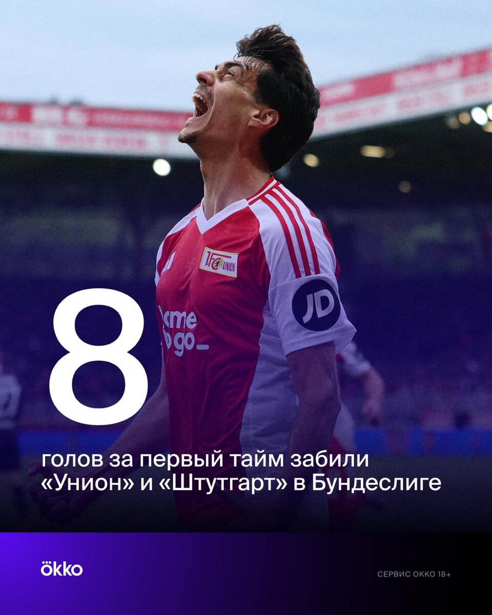 Сумасшествие в матче «Унион» — «Штутгарт». Самый результативный первый тайм в истории Бундеслиги 🫨 Команды забили 8 голов и ушли на перерыв со счетом 4:4. Так и сыграли — второй тайм оказался безголевым. 🤯 — что это было?!