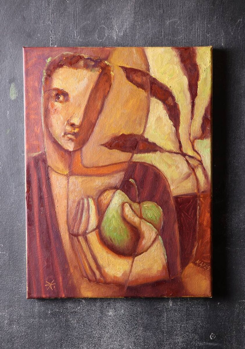 «Жующий в махровом халате с яблоком» Масло, холст 30х40, март 2025 Кажется, моя золотая жила идей в простых бытовых сюжетах. Чуть позже на новых картинах это станет совсем понятно, но уверяю — ждать от меня мистики, фантастики, мифологии и сюрреализма и прочей херомантии не стоит.