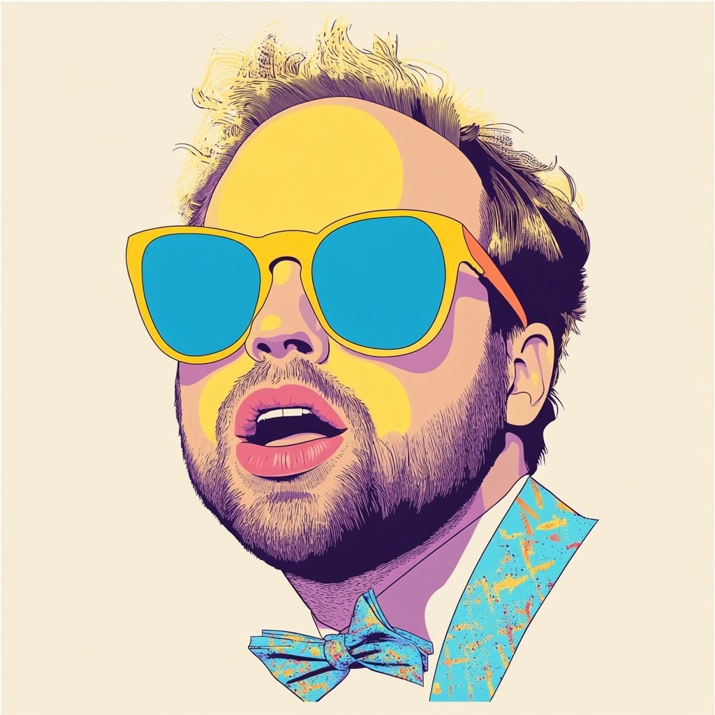 Создано на основе запроса: iconography album covers of the 70s and 80s, Surreal and detailed illustrations, big lips sophisticated pastel color palette white background