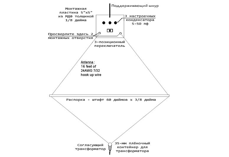 🔹 В верхней части антенны находится монтажная пластина, которая поддерживает трёхпозиционный переключатель смены диапазонов и три настроечных конденсатора. Каждый конденсатор резонирует с рамкой на одном диапазоне. Читать далее >>
