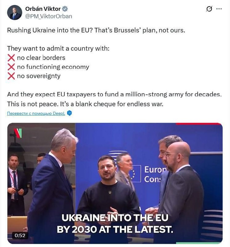 Принятие Украины в ЕС — это пустой чек на бесконечную войну, — Орбан Die Akzeptanz der Ukraine in der EU ist ein leerer Scheck für einen endlosen Krieg, Orban