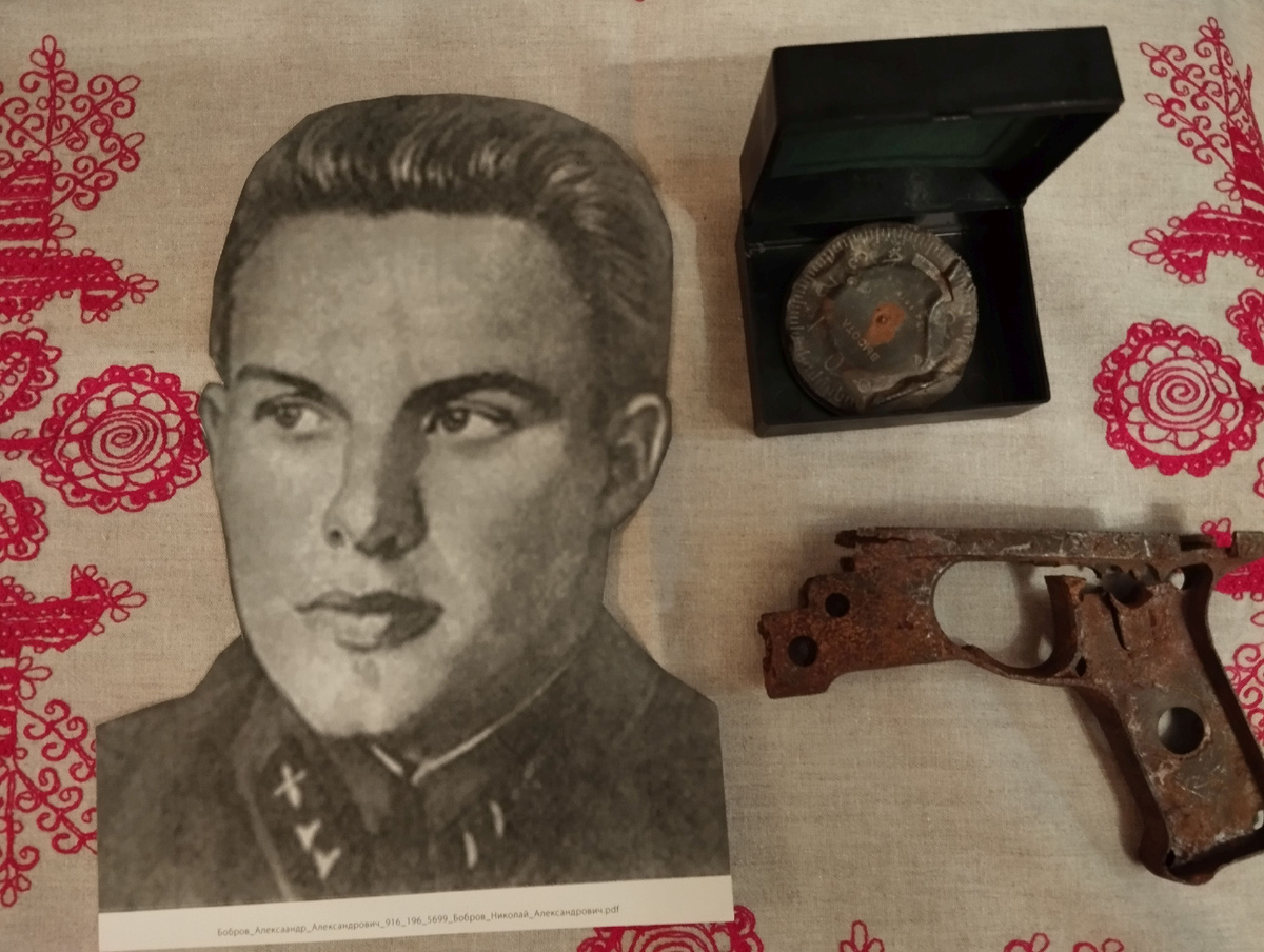 За несколько минут до Пасхального чуда ещё раз обращусь к подвигу своего старшего брата – Николая Боброва. Как-о связано. Я сегодня целую не только крест, но и рукоять скоростного пулемёта ШКАС, из которого разил врага Герой Советского Союза. Это – подлинная рукоять из раскопок, которые вёл отряд Безымянный под руководством Германа Сакса. Ребята достали её с глубины трёхэтажного дома – так ушёл в землю после огненного тарана бомбардировщик Туполева СБ-2 . Ещё мне поисковики подарили высотомер с замершей отметкой 760 метров. На этой высоте финская зенитная батарея поразила СБ-2. Зачем они бомбили линию фронта по реке Муратовка? Почему без прикрытия истребителей и так низко? Никто не ответит – война! Героически погиб один из лучших экипажей 44-го бомбардировочного полка. Официальные данные? С началом Великой Отечественной войны Николай Бобров сражался на Ленинградском фронте. К июлю 1942 года воздушный стрелок-радист 44-го отдельного скоростного бомбардировочного авиационного полка стар