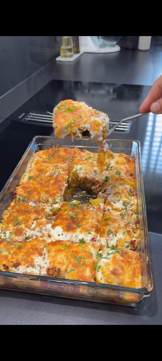 Запечённый картофель с фаршем и соусом бешамель 📋ИНГРЕДИЕНТЫ: 🍓6–7 средних картофелин 🍓2–3 столовые ложки растительного масла 🍓350 граммов мясного фарша 🍓1 луковица 🍓3 зелёных перца 🍓1 сладкий красный перец 🍓Примерно полстакана томатного пюре или 2 помидора 🍓1 чайная ложка соли 🍓1 чайная ложка чёрного перца Для соуса бешамель: 🍓1 столовая ложка сливочного масла 🍓2 столовые ложки с горкой муки 🍓4 стакана молока 🍓Немного соли и чёрного перца Для верха: 🍓150 граммов тёртого сыра (лучше всего использовать твёрдый, плавящийся сыр) ПРИГОТОВЛЕНИЕ. Нарежьте картофель ломтиками и выложите в форму для запекания, можно в произвольном порядке. Полейте немного маслом. Запекайте в предварительно разогретой до 200 градусов духовке до лёгкого румянца. Фарш обжарьте на сковороде до испарения жидкости, затем добавьте мелко нарезанный лук и перцы, хорошо обжарьте. Добавьте томатный соус, соль, чёрный перец, немного обжарьте, затем добавьте немного горячей воды, перемеш
