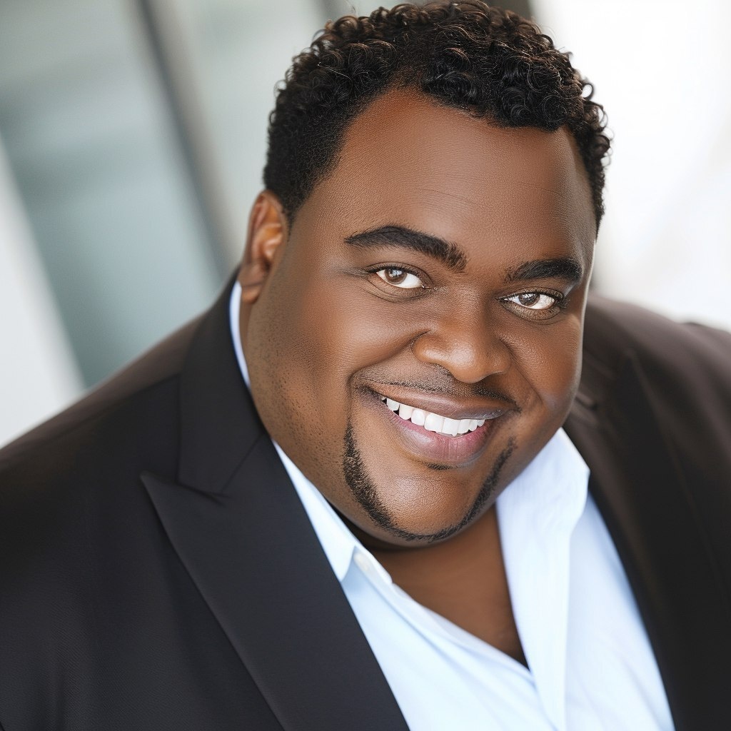 Создано на основе запроса: A slighlty overweight African American man posed for a headshot. clean-shaven face, chubby cheeks, deep brown skin, short tightly coiled black hair, and friendly smile. His expression conveys charisma and approachability. a round face with expressive eyes. The background is softly blurred in a studio setting, and he wears a fitted dark blazer over a crisp white shirt, no tie. Natural lighting highlights the warmth of his skin tone. The overall tone is polished, welcoming, and professional perfect for corporate, executive, or leadership roles. --- Автоперевод: Славкий афроамериканский человек с избыточным весом позировал для выстрела в голову. Красиво вышло? 🤔 https://dzen.ru/id/65c0c65c86e4f837c27b24d7 #ИИ #AI #нейросеть #midjourney #art