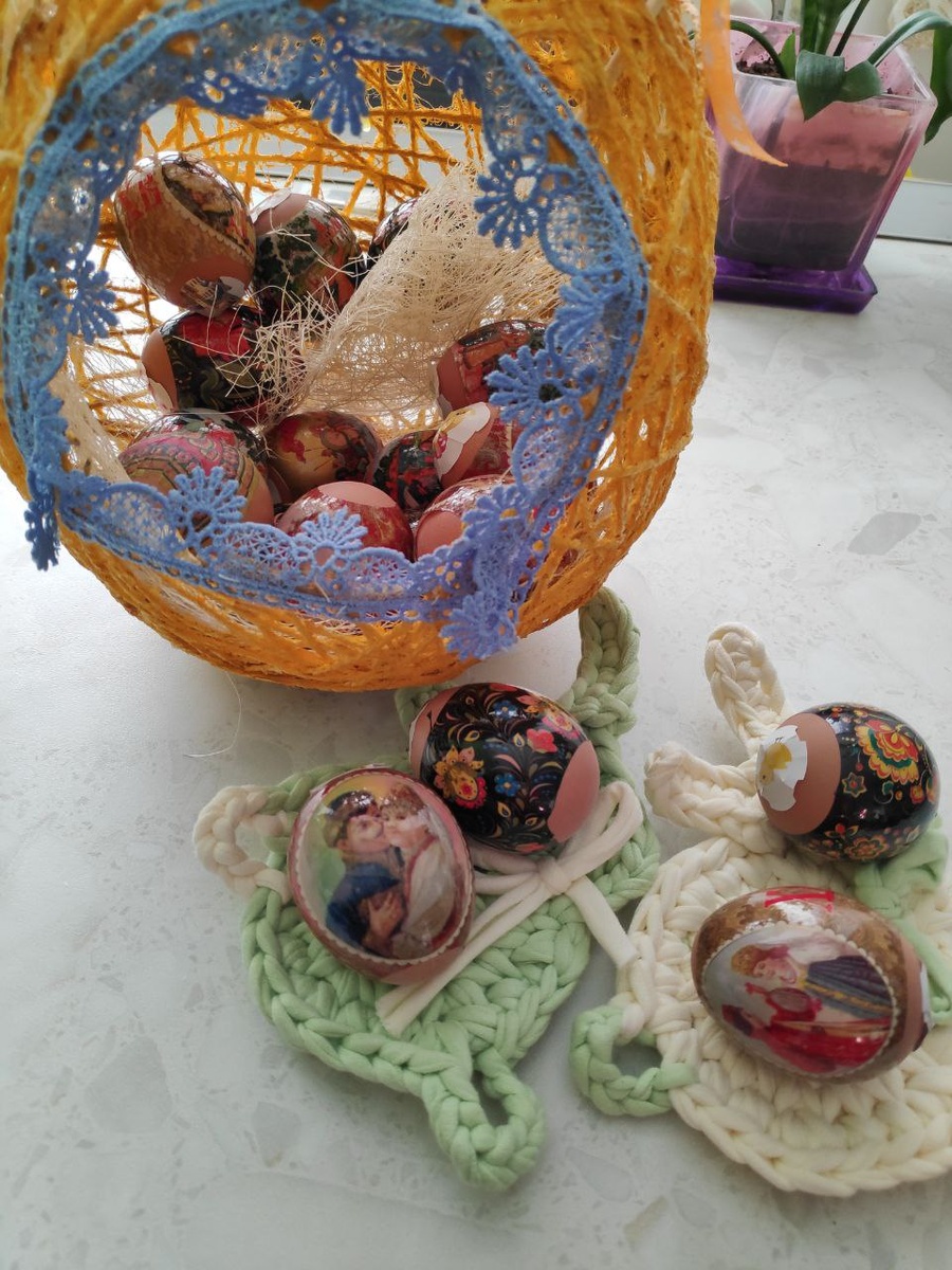 А про себя то ничего не написала😂 Почему-то я никак не могу готовится к ней с вечера, поэтому всегда делаю это с утра. Хотя иногда на меня находит. Вот, однажды я начала готовиться к Пасхе задолго до нее, сделав вот такие 3 жёлтых плетёных яйца и подарила любимым свекровям💜 Ну и в контенте я такая-же: то в попыхах строчу, то целый план- банан реализовываю