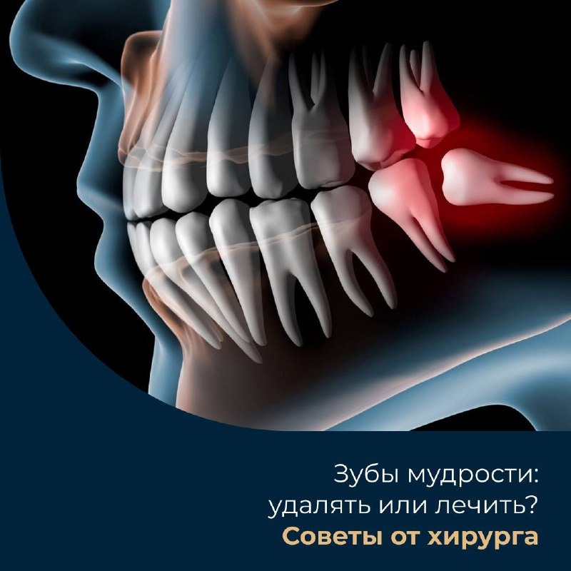 Зубы мудрости — рудименты, которые часто приносят больше проблем, чем пользы. Они прорезываются поздно (в 18–30 лет), когда челюсть уже сформирована, и нередко растут вбок, давят на соседние зубы или остаются под десной. Стоит ли их сохранять или лучше удалить сразу? Разбираемся с хирургом. Когда зубы мудрости нужно удалять? 1️⃣ Неправильное положение (дистопия) Если зуб растет горизонтально, упирается в «семерку» или щеку, он травмирует слизистую, провоцирует скученность зубов и воспаление. 2️⃣ Ретинированный зуб Он частично или полностью скрыт под десной и костью. В «кармане» скапливаются бактерии, вызывая воспаление. 3️⃣ Кариес или пульпит Из-за труднодоступного расположения качественно пролечить «восьмерку» почти невозможно. Кариес быстро переходит на соседние зубы. 4️⃣ Отсутствие места в челюсти Если зубам некуда расти, они смещают весь ряд, портя прикус и эстетику улыбки. Когда можно оставить «восьмерку»? ⭐️ Она растет ровно и участвует в жевании. ⭐️ Противоположный зуб сохран