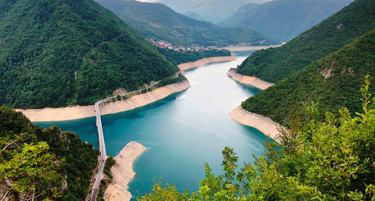 На севере Черногории, на границе с Боснией и Герцеговиной, на высоте 675 метров над уровнем моря располагается одно из самых красивых мест в стране - Пивское озеро. Опоясанное скалами и горными вершинами, окруженное буйными зелеными зарослями длинное и узкое озеро известно кристально чистой водой изумрудно-бирюзовых оттенков и лазурных переливов, славится богатыми запасами рыбы, большую часть которых составляет форель, восхищает натуральной красотой и поражает огромными размерами. Общая площадь акватории занимает 12,5 км², суммарная протяженность всех рукавов превышает 43 км., а максимальная глубина достигает 188 метров и, согласно некогда проведенным расчетам, питьевых запасов водоема может хватить всему населению Черногории более, чем на 20 лет. Озеро до такой степени органично вписывается в горный пейзаж и настолько естественно выглядит, что трудно вообразить его не природное, а искусственное происхождение. И просто замечательно, что при всех вышеперечисленных уникальных данных эта достопримечательность не является особо популярной и часто посещаемой у туристов, возможно, из-за ее относительной удаленности от прибрежных курортов.