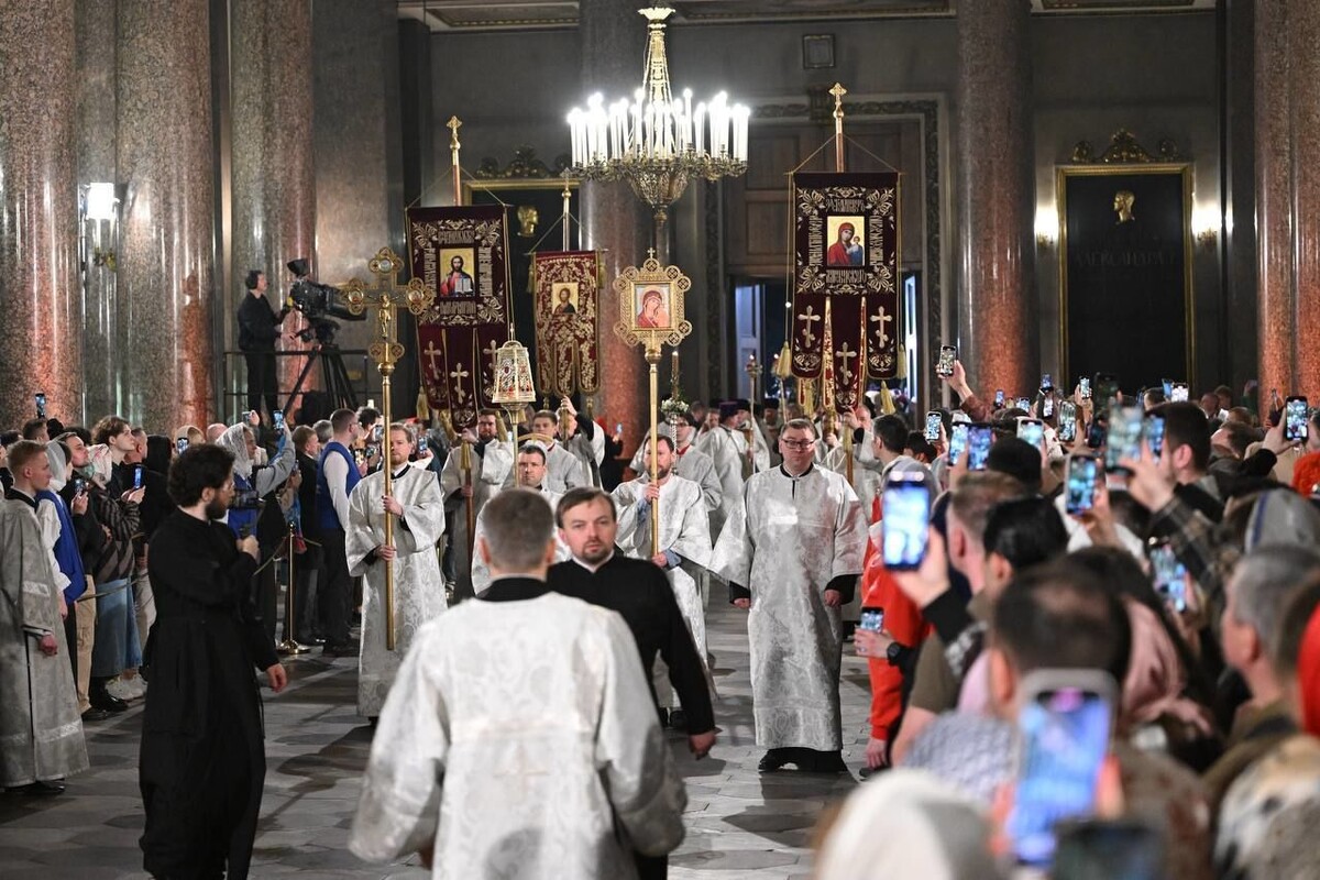 В этом году Святую Пасху в один день, 20 апреля, отмечают все христиане – представители православной, католической и протестантской церкви. В Казанском кафедральном соборе пасхальное архиерейское богослужение совершил митрополит Санкт-Петербургский и Ладожский Варсонофий в сослужении духовенства митрополии. Как сообщили в пресс-службе Смольного, на богослужении присутствовали губернатор Санкт-Петербурга Александр Беглов, председатель Законодательного собрания Санкт-Петербурга Александр Бельский, министр спорта Российской Федерации Михаил Дегтярев, ректор Санкт-Петербургского государственного университета Николай Кропачев, депутат Государственной думы Михаил Романов. Глава города поздравил митрополита Варсонофия, духовенство и прихожан с великим праздником. «Пасха – праздник торжества веры, символ победы добра над злом. Во все времена он особо торжественно отмечался нашим народом. Сегодня пасхальные богослужения проходят во всех храмах нашего города. На них пришли многие тысячи петербур