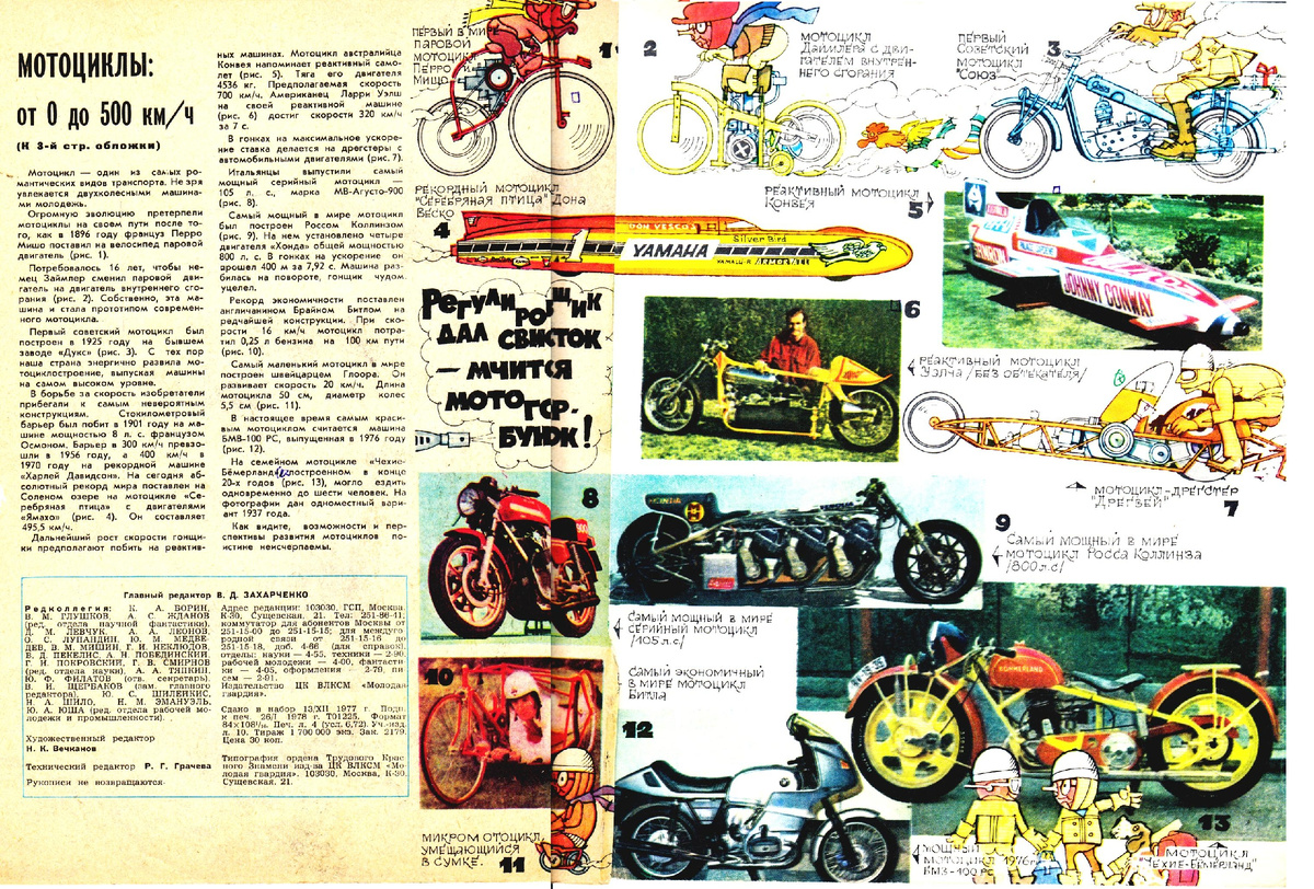 Вот совершенно не знаю почему, а фотография - в нижнем правом углу - этого странного мотоцикла и его коротенькое описание в старом журнале "Техника Молодёжи", чем-то зацепила меня.