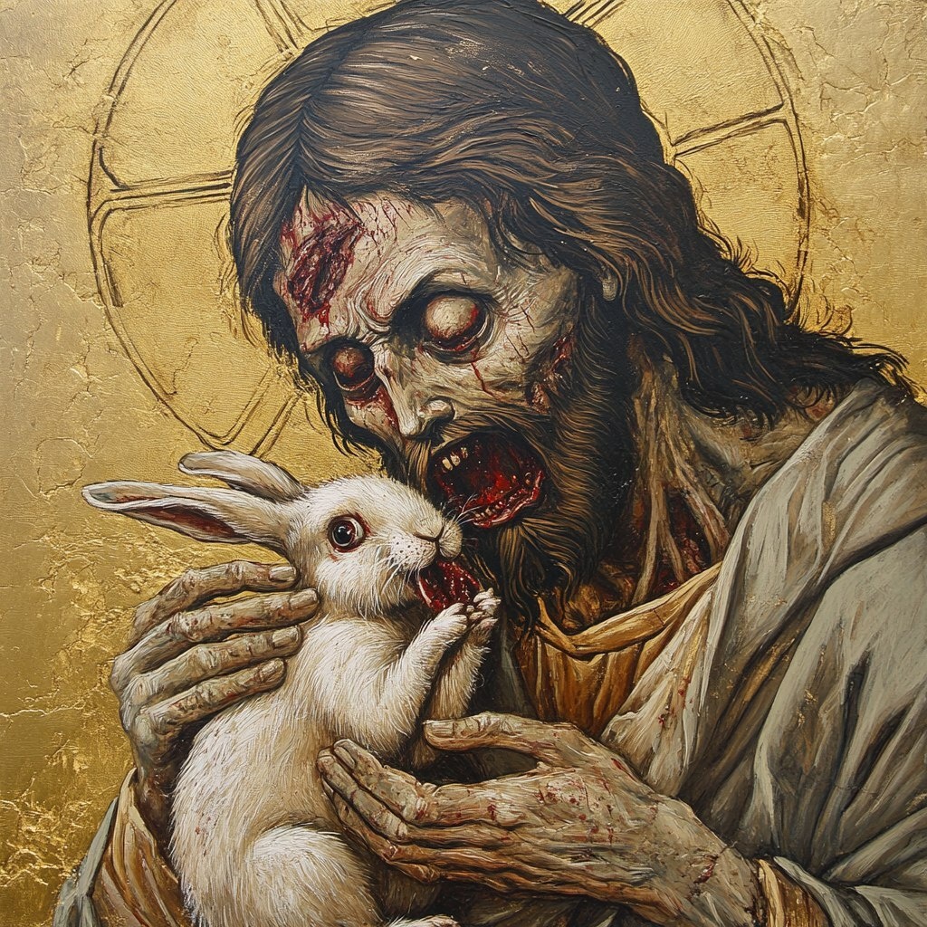Создано на основе запроса: greek orthodox zombie Jesus eating a rabbit