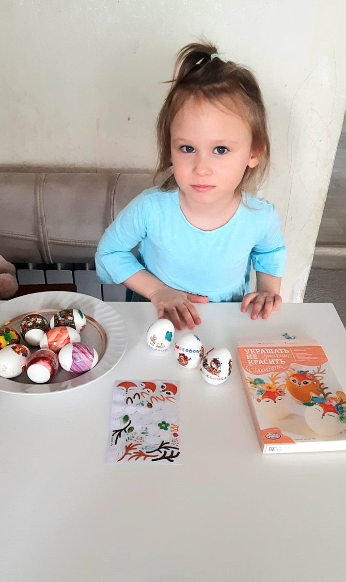 Вчера мы купили вот такой набор для украшения яиц на Пасху. Алисе очень понравилось украшать яйца. Но каким-то образом, она начала стучать одно яйцо, об другое. Видимо запомнила с прошлого года. Конечно же я ей сказала, что это будем делать только завтра. И продолжили украшать. А сегодня уже бились яйцами. Я победила.😃 Порезали куличики. Но Алисе так было вкуснее.😃 Со Светлым праздником! Пусть в вашем доме всегда будем мир и любовь. Христос Воскресе!