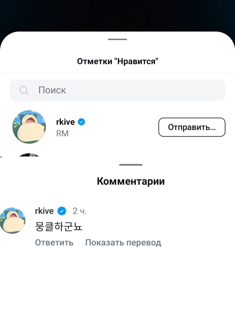🎋 Намджун лайкнул и прокоментировал пост Джина: