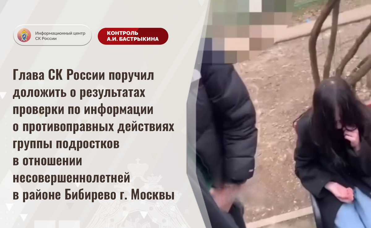 Глава СК России поручил доложить о результатах проверки по информации о противоправных действиях группы подростков в отношении несовершеннолетней в районе Бибирево г. Москвы