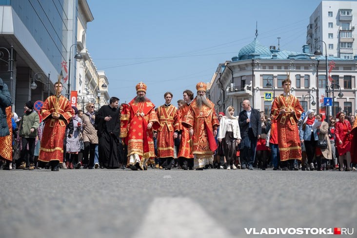 Светлая Пасха: как Владивосток отпраздновал Воскресение Христа. Воскресенье выдалось теплым и безоблачным, и тысячи людей, славя Христа, прошлись по главной улице Владивостока. Так с Крестного хода, уже традиционно для города, началось празднование Пасхи. Завершив ход службой и получив благословение, люди высыпались на площадь — давая себе волю после строгого поста. Тут продавали куличи, пасхи, пироги и булочки, раздавали блины, чай и символ возрождения — яйца. Любой желающий мог унести с собой столько, сколько посчитает нужным. Песни, танцы, хороводы и игры не давали гостям налегать на мучное, всё время у сцены слышались инструкции к новой фигуре в танце. Как город отметил праздник Воскресения Христа, смотрите в нашем фоторепортаже. 🟥Подписаться | Предложить новость