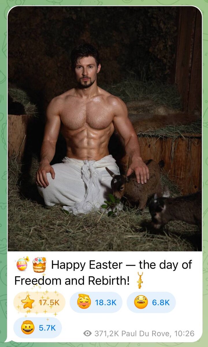 С самого утра Павел Валерьевич радует нас пикантными пасхальными открытками из хлева в объятьях с барашком 😏. В сети эта фотка вызвала большой ажиотаж (оно и не удивительно).