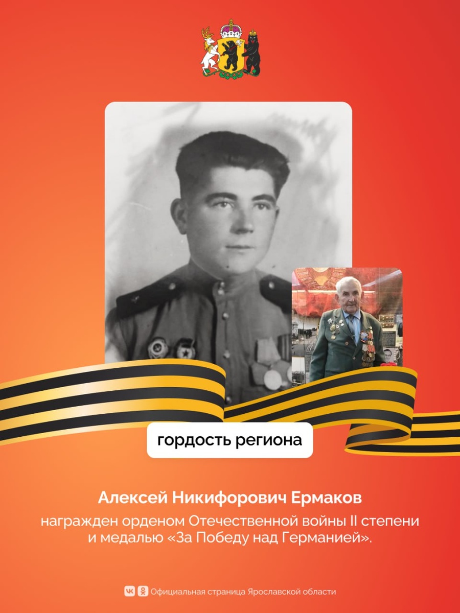 Когда грянула война, Алексей Никифорович Ермаков жил под Ржевом – в местах, где вскоре развернулись одни из самых кровопролитных боёв. Осенью 1943 года он сам встал в строй, попав в 732-й зенитно-артиллерийский полк. В качестве наводчика зенитного орудия он прошёл с боями пол-Европы: освобождал Тулу, Минск, Брест, Варшаву, прикрывая небо и наземные войска от вражеских атак.