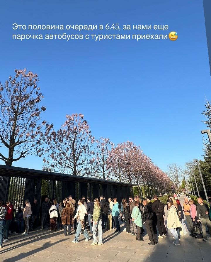 От подписчицы 😅👇 Мы подумали, что в праздник не будет очередей в Японский сад и приехали к 7 утра, чтобы погулять в тишине Очередь и автобусы с туристами в воскресный день. 🤝🤝🤝🤝🤝🤝 📷anna.fotolife 💟Парк Галицкого| Подписаться
