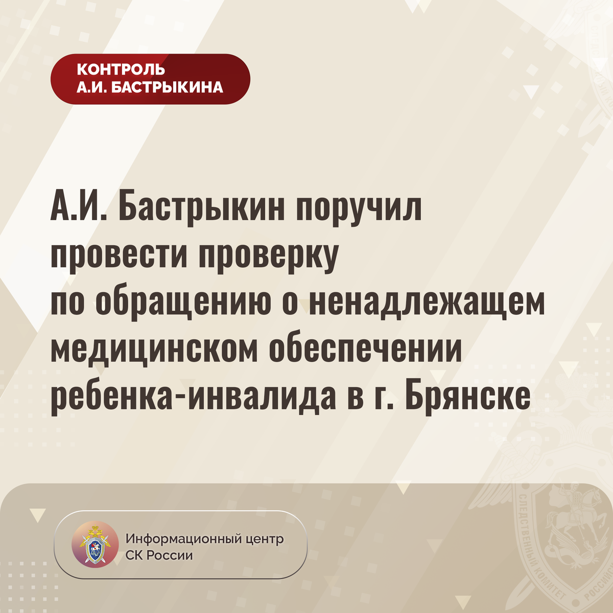 А.И. Бастрыкин поручил провести проверку по обращению о ненадлежащем медицинском обеспечении ребенка-инвалида в г. Брянске