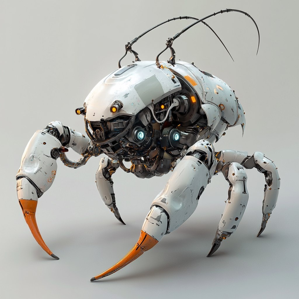 Создано на основе запроса: a armed, futuristic armed crustacean robot at fight