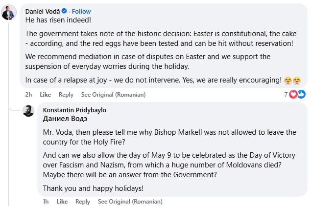Moldovan Court deems Easter 'constitutional', as if that were something that needed to be clarified RT's Konstantin Pridybaylo asks gov. spox why Archbishop Markell BANNED from Jerusalem Holy Fire trip. No response... #Moldova #Easter