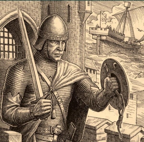 Поскольку герой сегодняшнего рассказа из благородный, то год его рождения известен- 1170. Место рождения недалеко от Булони, местечко Курсе. Его родитель некий Бодуэн Бюке был владетелем многочисленных поместий. Возможно именно это позволило Эсташу совершить путешествии в по Средиземному морю, во время которого получил представление о морской навигации, а заодно, как говорили, научился у дьявола искусству черной магии и колдовства. Однако близкое знакомство с дьяволом не помешало ему по возвращении вступить в бенедиктинский монастырь Св. Вулмера в Самере и принять постриг. Более того он стал черным монахом, т.е. монахом посвященным в священнический сан. Дальше новое несоответствии - после смерти отца ( 1190 год) он наследовал все его титулы и богатства. На этом, кажется, его служба господу прекратилась, т.к. Эсташ поступает на службу к графу Булонскому Рено де Даммартену. Служба вполне светская. На ней он участвует в войнах в которых король завоевал Нормандию, Анжу и Мен, в ранг