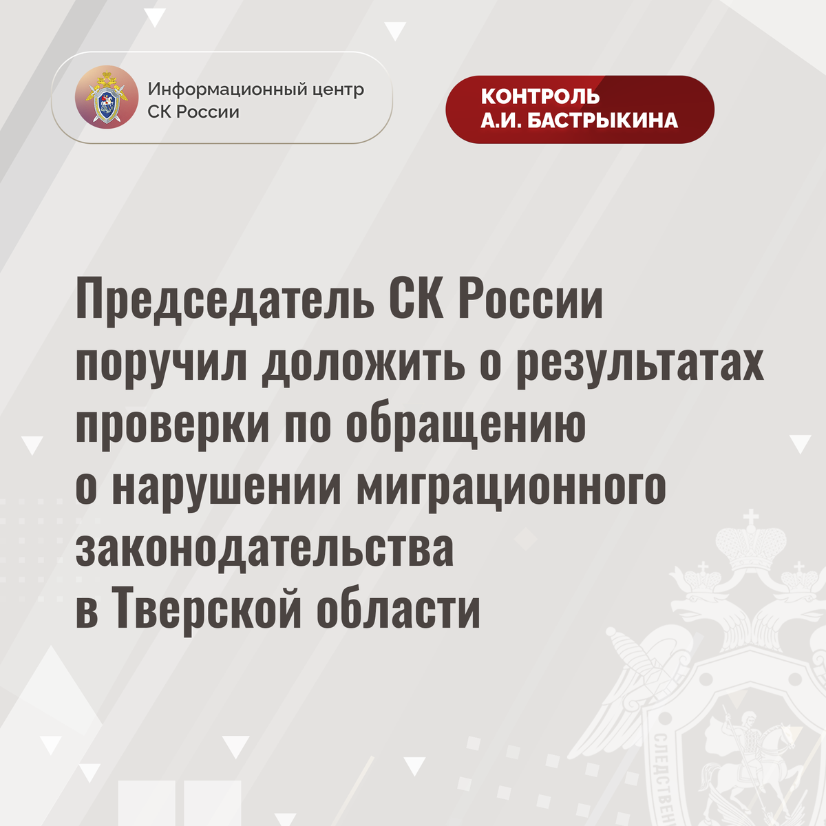 Председатель СК России поручил доложить о результатах проверки по обращению о нарушении миграционного законодательства в Тверской области