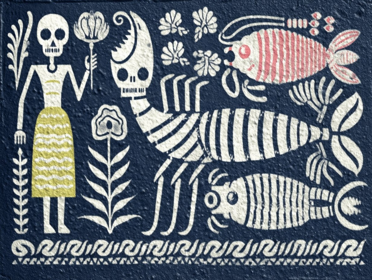 Создано на основе запроса: colorful graphic muertos de la mortes stencil female skeletal crustacean