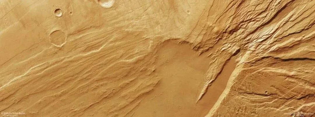 Оба типа рельефа представлены на новом изображении, сделанном стереокамерой высокого разрешения (HRSC) аппарата Mars Express.