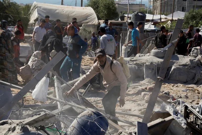 Devastation from IDF bombing of tented encampment near Khan Yunis captured by Reuters
