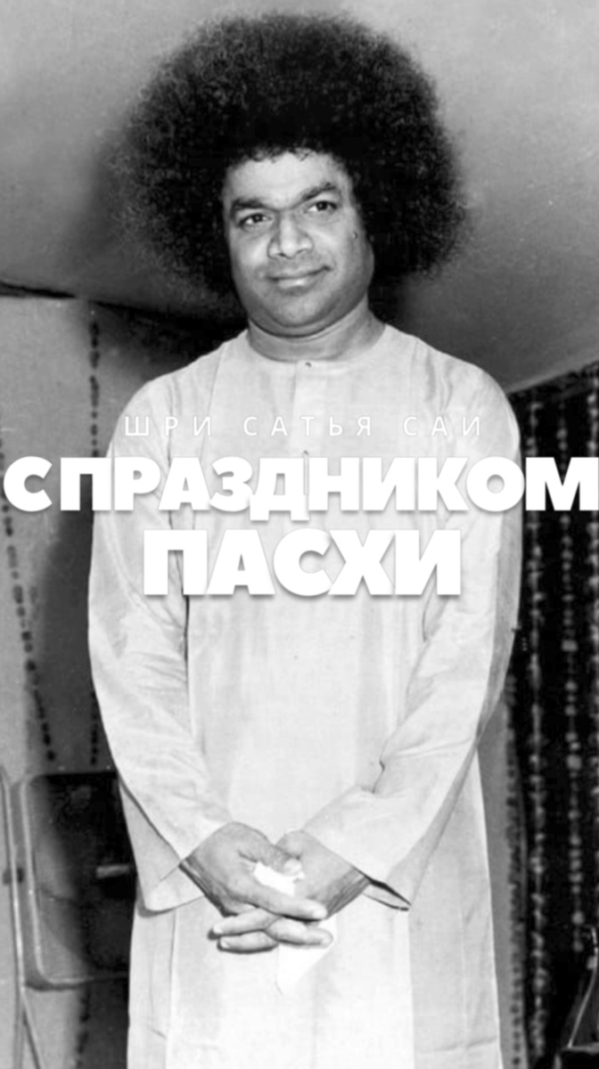 Ом Саи Рам🙏 Глобальный Совет Шри Сатья Саи Россия поздравляет всех с прекрасным праздником Пасхи ♥ Давайте в этот светлый день внимательно отнесёмся к словам Бхагавана: "Иисус сказал: "Я и мой Отец едины". Все люди являются посланниками Бога. Это означает, что им нужно раскрыть Божественность в себе. Когда люди могут называть себя сыновьями Бога? Посмотрите, какие бескорыстные чистые действия совершает Господь ради всех людей. У Него нет личного интереса. Всё, что Он делает, говорит или думает – всё это для всеобщего блага. С другой стороны, всё, что делают, говорят или думают люди эгоистично. Люди стали марионетками эго. Люди могут называть себя сыновьями Бога только тогда, когда они полностью освободятся от эгоизма и раскроют Божественность в себе. Для того чтобы называть себя сыновьями Бога, вы должны развить в себе качества Отца". Божественная беседа, 25 декабря 1994 г.