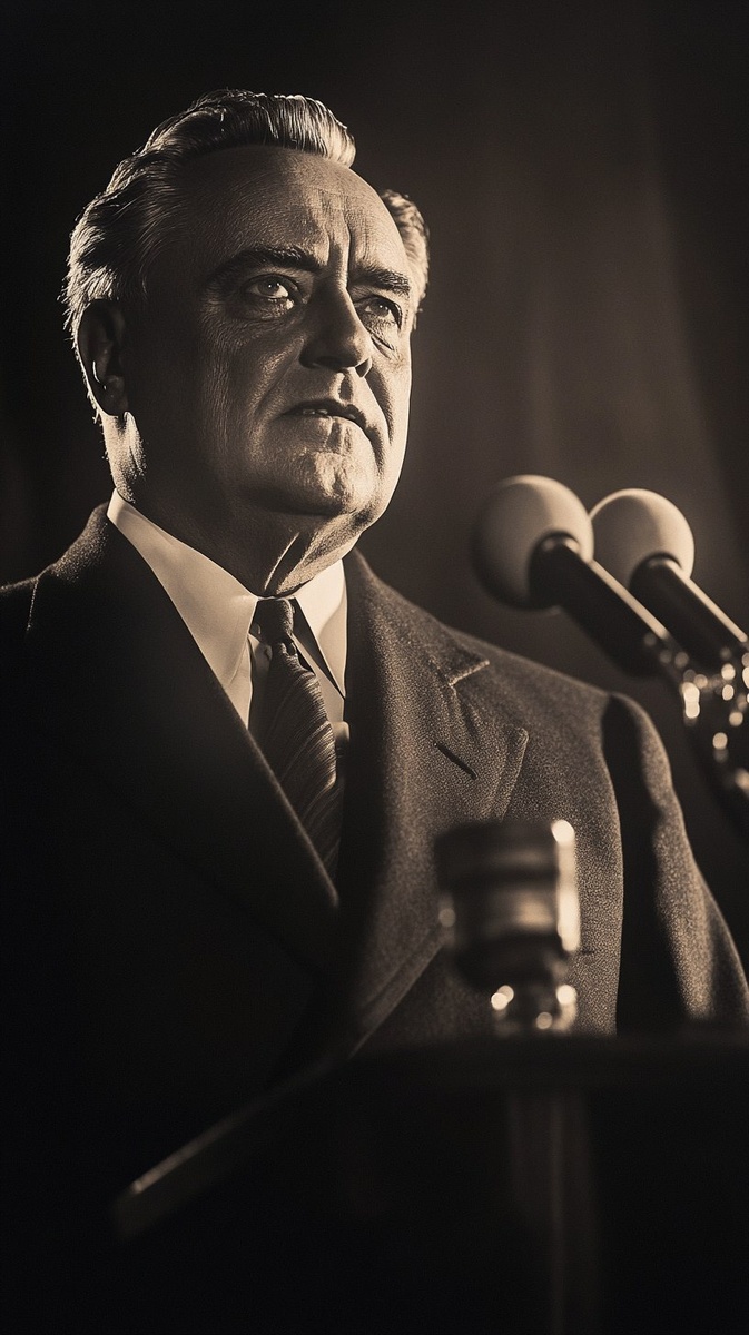 Создано на основе запроса: a dramatic historical portrait of Franklin D. Roosevelt giving a speech during World War II, powerful lighting, patriotic atmosphere, vintage American photo style, grayscale with soft warm tones, respectful and dignified expression --- Автоперевод: Драматический исторический портрет Франклина Д. Рузвельта, произнося речь во время Второй мировой войны, мощное освещение, патриотическая атмосфера, винтажный американский стиль фото, серого цвета с мягкими теплыми тонами, уважительное и достойное выражение Интересно получилось? 🤔 https://dzen.ru/id/65c0c65c86e4f837c27b24d7 #ИИ #AI #нейросеть #midjourney #art