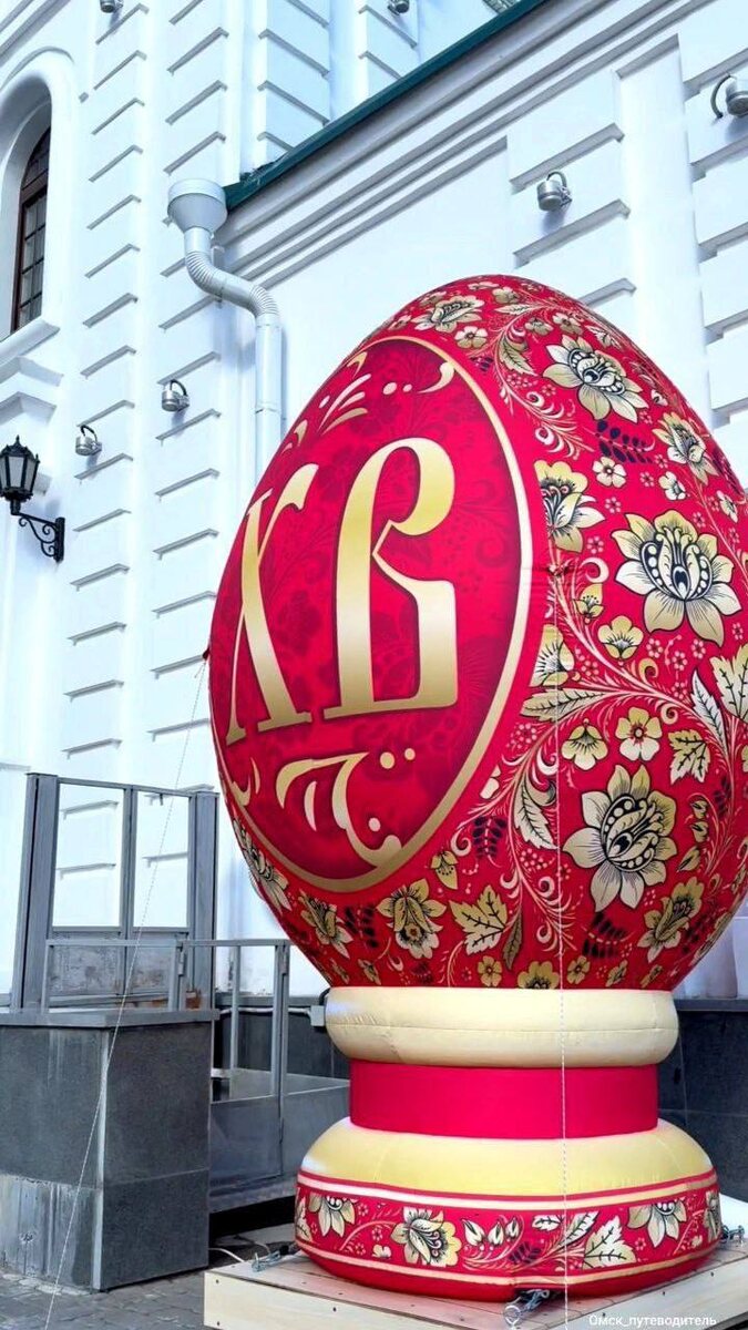 🐣В Омске появились пасхальные инсталляции У Воскресенского собора установили масштабное пасхальное яйцо и световую надпись «Христос Воскресе!» в честь праздника Пасхи. Фото: Омск путеводитель.