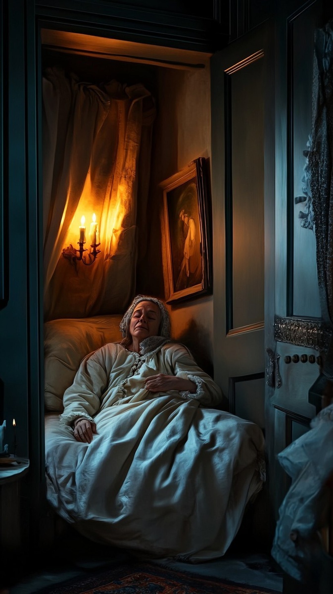 Создано на основе запроса: An old woman lying ill in a small 18th-century hotel room, young Mozart rushing out the door in panic, candlelight flickering, urgency and despair, dramatic vertical composition --- Автоперевод: Старуха, лежащая в маленьком гостиничном номере 18-го века, молодой Моцарт выбегает за дверь в панике, мерцание свечей, срочность и отчаяние, драматическая вертикальная композиция Классно получилось? 🤔 https://dzen.ru/id/65c0c65c86e4f837c27b24d7 #ИИ #AI #нейросеть #midjourney #art