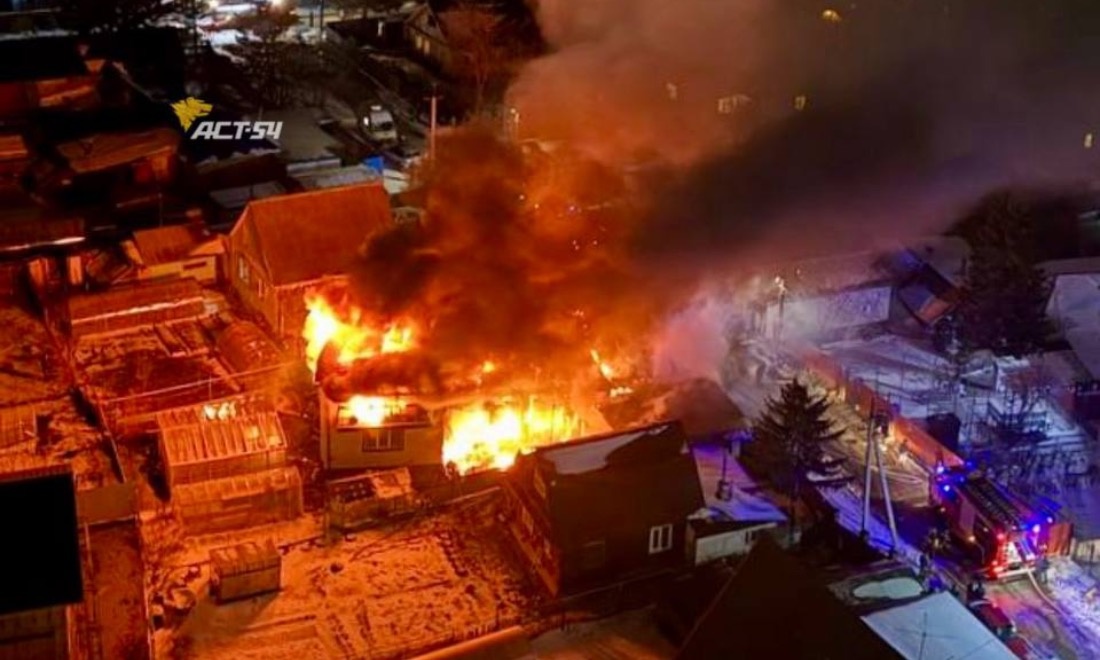 Пожарные час тушили огонь. Площадь возгорания составила 245 квадратных метров. В ночь на 20 апреля в Кировском районе Новосибирска произошёл пожар в частном секторе, сообщили в пресс-службе регионального МЧС. Прибывшие на место пожарные обнаружили, что горит жилой дом, огонь перекидывался на соседние участки. Пять жильцов успели самостоятельно покинуть здание, никто из них не пострадал. В результате пожара дом, гараж и хозяйственные постройки были полностью уничтожены, также пострадал соседний участок. Предположительная причина возгорания — короткое замыкание электропроводки. В ликвидации пожара участвовали 27 специалистов и 7 единиц техники.