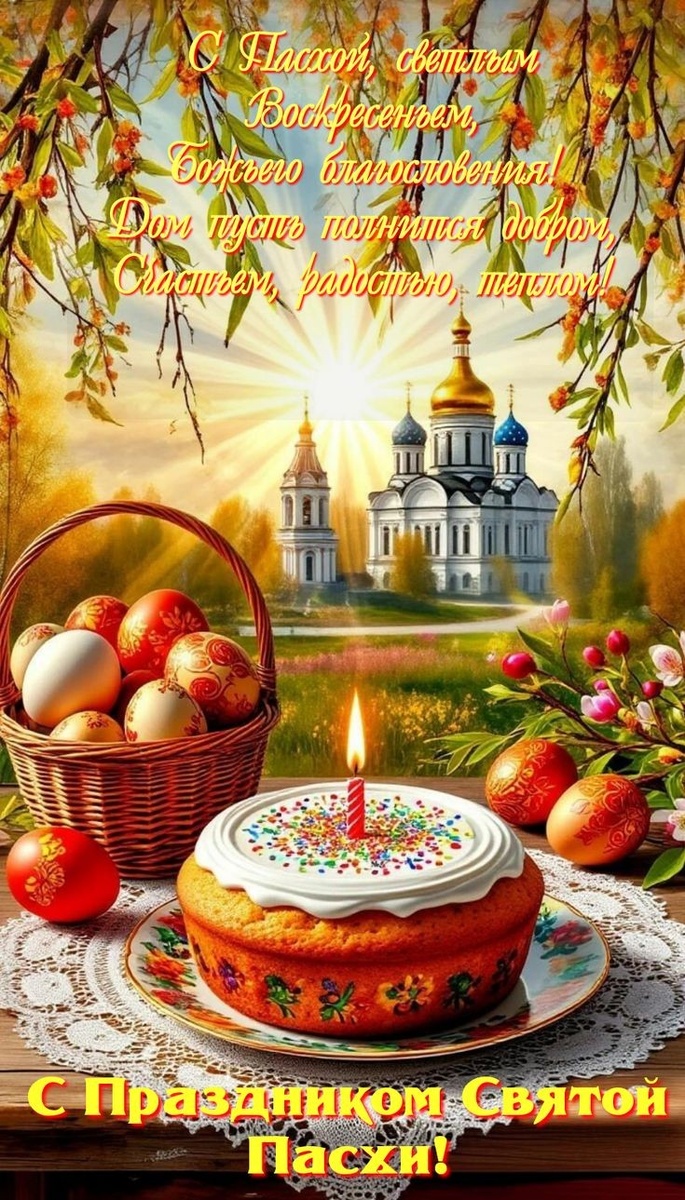 Христос воскресе! В этот светлый и чистый праздник желаю в Ваш дом добра и благодати. Пусть на душе всегда будет спокойно, над головой — мирное и ясное небо, а рядом — надёжные и верные друзья. Желаю, чтобы Пасха принесла Вам теплоту и радость в сердце. Пусть Господь дарует Вам свою любовь и крепкую веру в душе. С праздником!💜♥️🧡