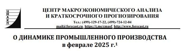 Правительственный аналитический центр ЦМАКП регулярно выпускает данные по динамике промышленного производства, в которых ведет свою собственную статистику (в последнее время отличающуюся от данных Росстата в худшую сторону) и, что важно, отдельно рассматривает динамику без учета военных отраслей. Вот, например, последний такой аналитический выпуск за февраль. И вот приведенный там график динамики промпроизводства. Аналитики отсчитывают динамику нарастающим итогом с начала 2021 года - это точка взята за базовую. Красный график сверху - это данные Росстата. Синий график сверху - данные альтернативного подсчета ЦМАКП. Зеленый график - данные альтернативного подсчета НИУ ВШЭ (он вообще идет сильно ниже обоих, причем разница усиливается с 2023 года). И отдельно внизу идет красный график, где указаны официальные данные Росстата, но за вычетом военных отраслей (снизу обвел, какие именно отрасли из него исключаются). И вот что получается. В целом промпроизводство (включая военные отрасли) за э