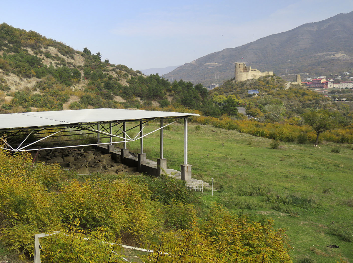 Из центра Мцхеты по улице Ахвладиани, ведущей к северному выезду, можно выйти на Самтаврский могильник, случайно обнаруженный в 1871 году при реконструкции Военно-Грузинской дороги. Регулярные раскопки на нём ведутся с 1938 года, а на волне туристического бума в археологической зоне устроили музей с платным и не дешёвым (кажется, 20 лари, то есть порядка 600 рублей) входом. Ещё и оказавшийся закрытым, но поняв, что внутри нет ни сторожа, ни свободно бегающих собак, мы легко перелезли ограду. Всего здесь известно более 3000 могил возрастом от 1000 до 4500 лет - примерно столько, в разных именах и статусах, существует Мцхета. За это время тут сменилось множество археологических культр, антропологических типов, забытых ныне языков, и конечно - форм погребения: костровища ранней бронзы с остатками простейшей керамики, курганы возрастом около 3500 лет, особенно обильные грунтовые могилы поздней бронзы, гробы-кувшины рубежа эр и каменные саркофаги первой половины Новой эры... Последние особе