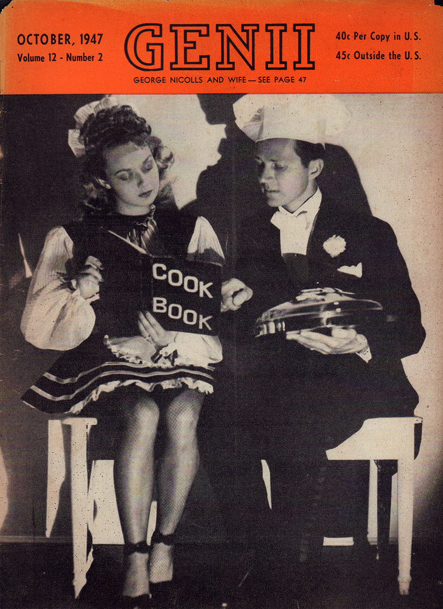 От рекламы вроде «Атомная свеча» и «Протыкание сигаретой» до наивного юмора фокусников и обворожительных ассистенток — в этих старых журналах о магии есть свой неповторимый шарм. У нас на руках два выпуска из сороковых–пятидесятых годов и два из восьмидесятых. Наслаждайтесь! «На обложке этого номера — Джордж Николлс и его очаровательная, едва обретённая супруга. Вместе они смотрятся как настоящая сцена из Голливуда и пользуются успехом в престижных ночных заведениях Америки. Недавно Николлс выкупил “спектакль с привидениями” и собирается дополнить свою и без того насыщенную карьеру ночными шоу, где призраки будут скакать, а потусторонние силы — шептать из темноты. Я ещё не видел эту постановку, но готов поспорить, что она того стоит». Поискав имя Джорджа Николлса в Google, я нашёл лишь упоминание в выпуске Billboard за 1951 год — он подавал в суд, требуя компенсацию за травму. Скорее всего, пострадал он на сцене... Интересно, что там случилось на самом деле? Пожалуй, останется загадкой