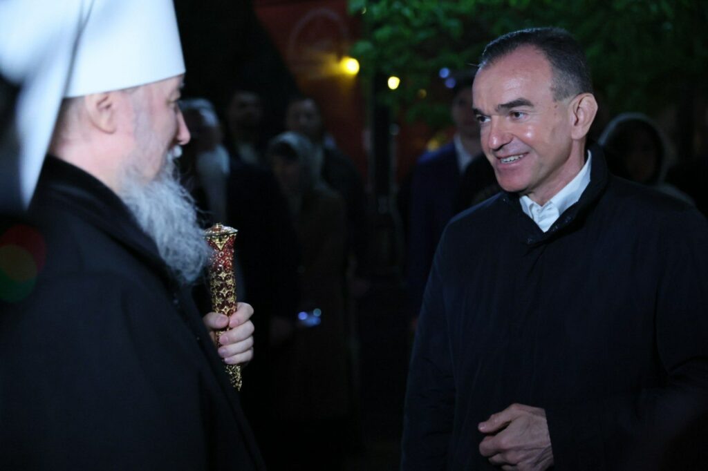 Губернатор Кубани Вениамин Кондратьев в ночь на 20 апреля принял участие в пасхальном богослужении в Свято-Екатерининском кафедральном соборе Краснодара. На богослужение глава региона пришел вместе с супругой и дочкой. Литургию провел митрополит Екатеринодарский и Кубанский Василий. Перед началом службы губернатор подарил ему букет белых роз и поздравил с наступающей Пасхой Христовой. В ночь на 20 апреля пасхальные богослужения провели во всех православных храмах Кубани. В каждый доставили частицу Благодатного огня, который привезли спецрейсом из Иерусалима.