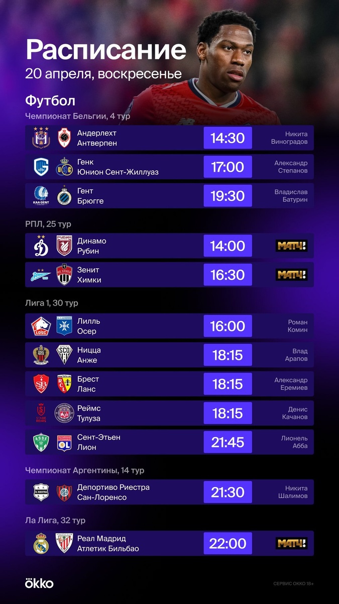 Плей-офф в Бельгии, Лига 1, Аргентина, Ла Лига и РПЛ — все это покажем в воскресенье в Okko! 🔥 Выбирай любимую трансляцию и будь с нами! 🙌🏻 https://okko.tv/s/4ot