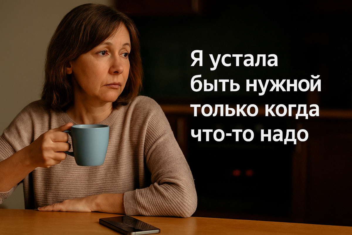 Она не замечала, как это началось. Сначала — звонки: «мам, а можешь зайти», «посмотри, у Лизки что-то с кашлем», «ты не видела мой паспорт?» Потом — «а ты бы не могла посидеть с внучкой на выходных?» Ну и по мелочи — «ты же у нас мастер по капусте», «с тебя салат на встречу класса», «ты же у нас лучшая по открыткам». Но с каждым разом внутри будто что-то сдвигалось. Они приходили, когда надо. А в остальные дни — тишина. Не потому что плохо. А потому что просто не вспоминали. И вот она сидит с кружкой чая на кухне. Смотрит, как капает кран. Молчит. И думает: «А если мне просто поговорить хочется? Без задачи. Без просьбы. Просто так?» Но не звонит. Потому что знает — будут заняты. Подумают, что-то случилось. Начнут волноваться. А она не хочет тревожить. Просто хотела бы, чтобы однажды позвонили сами. Не с «мам, а ты можешь», а с «мам, ты как?» Иногда важность измеряется не в помощи. А в простом желании быть рядом, когда от тебя ничего не нужно. --- 1. Напомнить себе: я не функция. Я чело