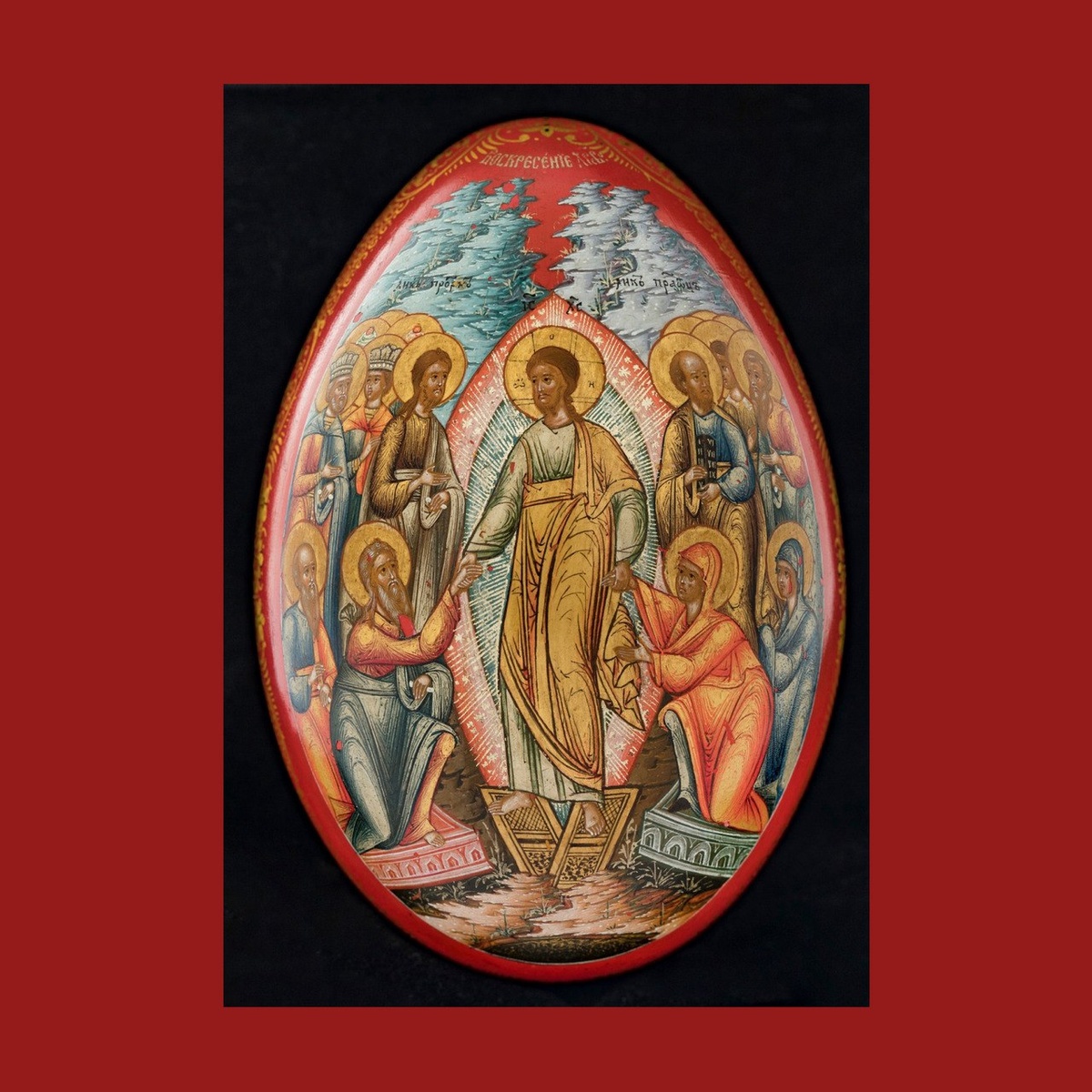 На фото — пасхальное яйцо последней четверти XIX века из коллекции музея с изображением Воскресения Христова.