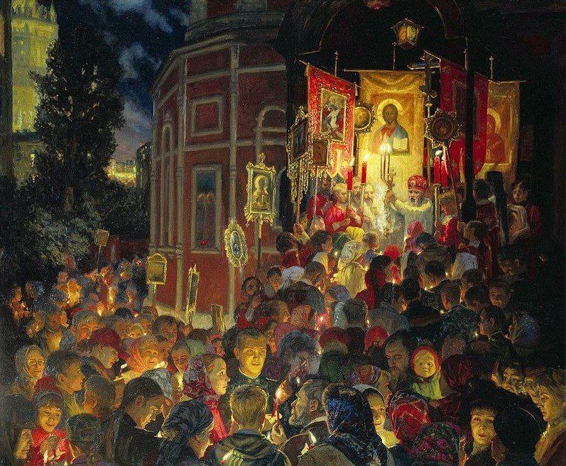 🌸🎨 Дорогие друзья! Сегодня я хочу поделиться с Вами восхитительным произведением художницы Юлии Кузенковой — картиной "Пасха", созданной в 2002 году. Эта работа выделяется своей глубиной и эмоциональностью, переплетая в себе традиционные ценности и современное восприятие. Юлия Кузенкова — выпускница Российской академии живописи, ваяния и зодчества под руководством И.С. Глазунова, которая с 1986 года ставила перед собой цель возрождения великого наследия искусства. В "Пасхе" художник мастерски использует техники реализма, чтобы передать всю яркость праздника и богатство русских традиций. 🔍 Когда мы смотрим на "Пасху", первое, что привлекает внимание — это насыщенные цвета и внимание к деталям. На картине изображены люди, погруженные в атмосферу торжества и надежды. Каждое лицо наполнено разными эмоциональными состояниями — от радости до созерцания, что отражает глубокую связь человека с духовностью и традициями. Композиция картины си